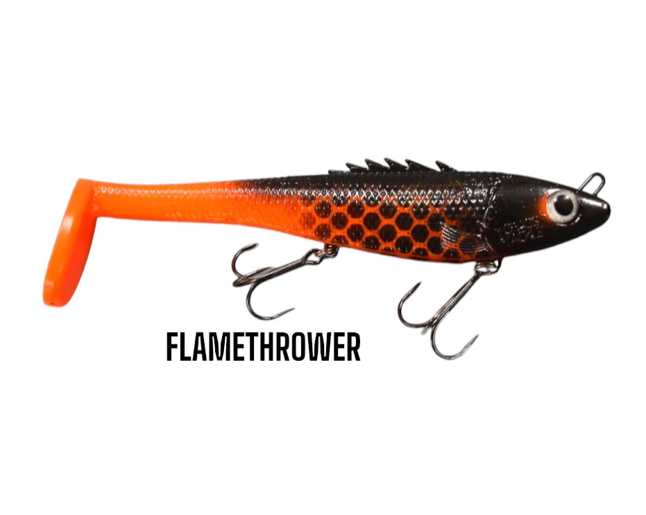 Posseidon 8" has been designed just like her big sister to the perfect length, weight, and balance to swim like no other paddle tail swim bait can. The Posseidons solid construction makes them more durable than any other soft plastic swim bait made. Posseidon can be fished in many different styles. Anglers have amazing success with a straight retrieve, ripping, twitching, and even trolling. If the Posseidon 8" is moving it’s catching. Poseidon 8" come standard two 2/0 Premium Black Trident Treble hooks.