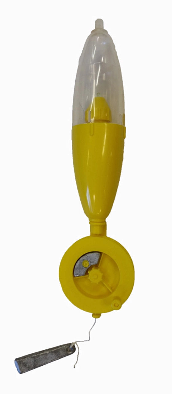 The Reversible Reel-A-Buoy is the ultimate in marker buoy systems! It's the only marker buoy designed for daytime and nighttime use, and provides the convenience of a built-in wind-up reel. The reel operates with an easy-to-use cranking handle that brings the line in at approximately one foot per revolution. No more time-consuming winding and no more tangled messes. Plus, with the high power Reel-A-Buoy light, you can mark your fishing spots at night with visibility up to 1/5 mile! Use the clear side up for nighttime use or for marking "secret" spots that others won't see during the day. Use the yellow side up for high profile daytime use, or attach the optional extension flag for maximum visibility in even the roughest conditions. (Never lose another buoy because you can't find it on the lake!) The Reversible Reel-A-Buoy comes equipped with 60-feet of nylon line, and it will hold up to 200-feet of Dacron or monofilament line. Uses two AA batteries that will last up to 120 hours. With Reel-A-Buoy, marking fishing spots has never been so easy and effective!