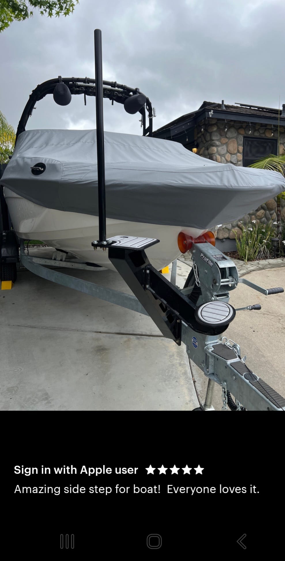This Boat step is custom designed to fit most fishing, pleasure and bass boats on the market. Crafted from carbon steel and finished with our standard glossy black powder coat, the Torchly boat trailer steps are designed for long-term use. Quality 316 stainless steel hardware ensures secure attachment, while durable anti-slip marine flooring helps to ensure more stable boarding. Our commitment to excellence translates to robust construction, top-notch customer service, and an overall sleek design to enhance your boating and fishing experience.